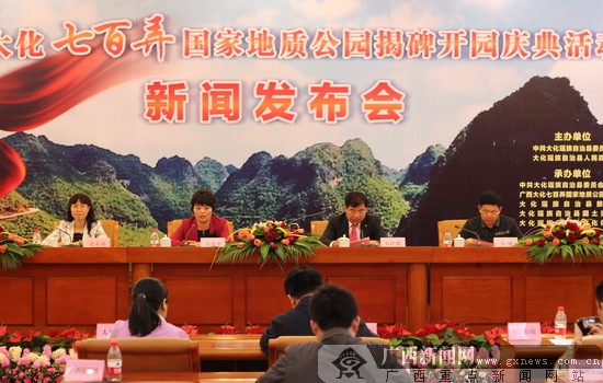 11月15日上午,大化县委、县人民政府在广西新闻中心举行新闻发布会,对外宣布广西大化七百弄国家地质公园将于11月23日正式开园迎宾。