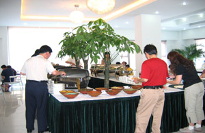 酒店餐饮以经营海鲜及东南亚地区各地美食为主,拥有可同时容纳人就餐的餐饮大厅和独具风格的自助烧烤风情区,让宾客在享尽口福之乐的同时,平添几分高雅情调。