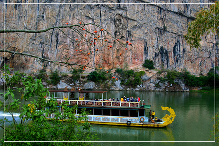 花山崖画:花山是明江岸畔的一座石山,因悬崖上有雄伟壮观的两千多年前骆越先民所作的图画而闻名世界;又因先民的画意、画法和成画年代的考古艰难,直到当今研究毫无结果而成为千古之谜。这壮观的花山崖画着实让我们惊叹了一番,个人认为不逊于敦煌壁画。