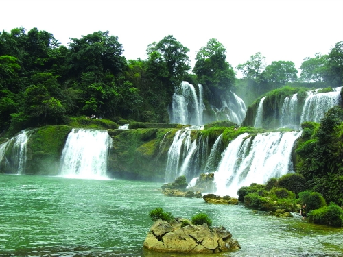 凭祥至硕龙为县级公路,弯多路窄。边境公路上风景胜似桂林山水,一路前行,老远就听到慑人心魄的轰响。再往前,一个宽达120米、落差70米、纵深60米的大瀑布映入眼帘,这个仅次于尼加拉瓜大瀑布的跨国大瀑布,与越南仅一水之隔,三级跌落,气势磅礴。周围郁郁葱葱,被水雾笼罩,呈现出温柔的一面。直到天色渐晚我们才意犹未尽地踏上回程。