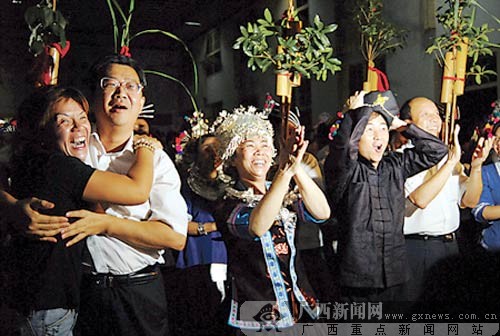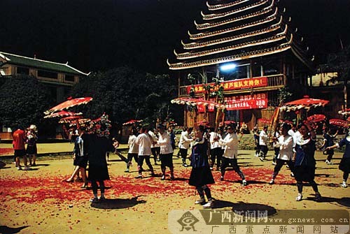 载歌载舞放焰火 侗乡三江为奥运冠军陆永加油喝彩