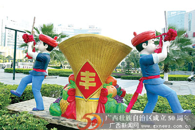 自治区成立50周年庆典临近 南宁街头布景观(组图)