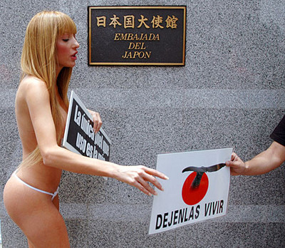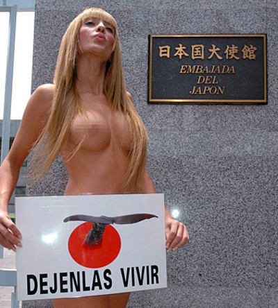阿根廷模特圣地亚哥“裸体抗议”日本捕鲸(图)