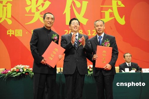 中新社南宁十二月四日电 (记者 蒋雪林 陆畅)中国著名导演张艺谋和运动员李宁四日在此间被广西官方授予“广西杰出贡献奖”,各获奖金百万元人民币。