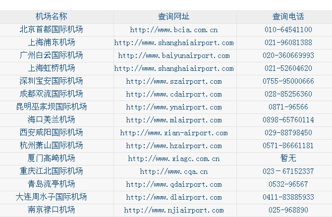 北京首都国际机场 http://www.bcia.com.cn 010-64541100