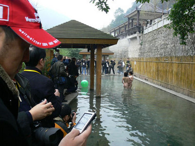重庆美女模特回归自然 温泉中秀人体艺术(图)