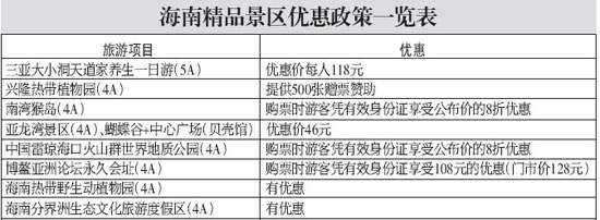 海南精品景区对广西散客实行的优惠政策详见下表。