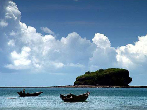 我以为,游览海岛的最大乐趣,就是可以安全地与大海亲密接触,享受蓬莱仙子们被大海拥抱的悠然。可我有时甚至无法将海南当作一个岛屿,因为它实在是太大了,大到使我产生“不识海南真面目,只缘身在此岛中”的错觉;但是,如果将你置身于一块巴掌大的礁石上,让你时时担心被波涛吞噬,那更是毫无乐趣可言。从这个角度看,涠洲岛25平方公里的大小确实很适合感受岛屿游的乐趣。它的知名度虽然无法与海南相比(也许因而在中国最美丽岛屿的排名中屈居第二),可涠洲岛能与附近的斜阳岛并称“大小蓬莱”,想来海洋景观也绝不会逊色,更值得称道的是它自身鲜明的特色:中国最大最年轻的火山岛,有着极为丰富的海蚀和火山遗迹景观,因而旅游资源也更加丰富。