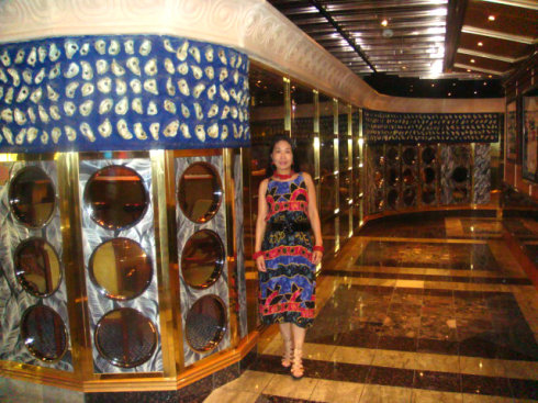 你也可以打扮得性感迷人,参加各种晚宴,在我们出发前,有一些资料是一定要看清楚的,每天晚上船上都有不同安排的活动,特别是第二天晚上,有一个船长邀请隆重的Party,每个人都要打扮,好像泰坦尼克号上面那些贵族们玩的游戏。船上的每个地方,都打造得高贵,尽管你的钱包里只有贫下中农的那点银子,却让你自我感觉像贵族那样良好