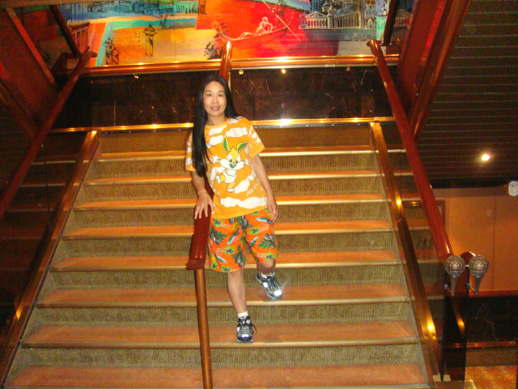 这种“海上行走的五星级酒店”游轮分6层,可以容纳3000多人,你可以穿着休闲的衣裤,像野小子一样楼上楼下地窜来窜去。去年的7月,我还没有开博客,所以很多相片都是我个人的,不好意思,就放在这里,与大家共享,喜欢看我本人的就多看几眼,不喜欢看的,就只看我身后的背景吧。