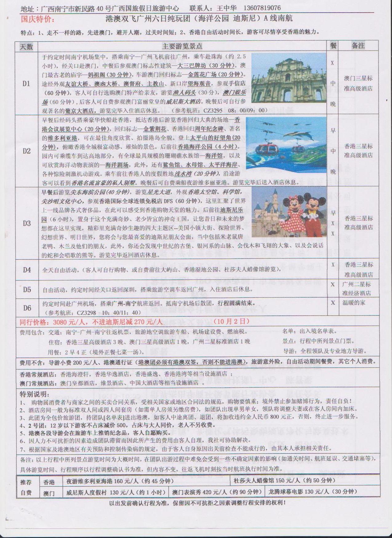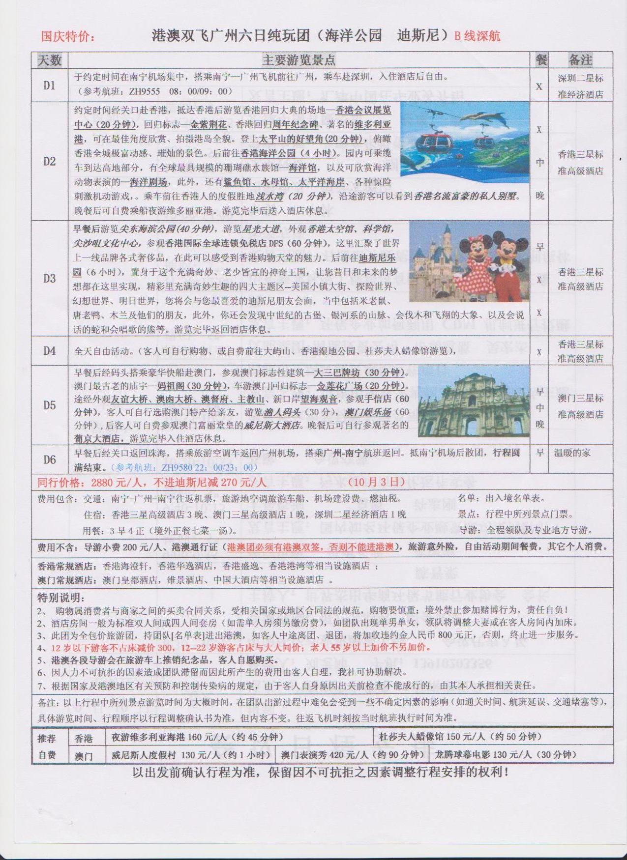 国庆特价: 港澳双飞广州六日纯玩团(海洋公园 迪斯尼)