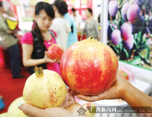 重约4斤、能挡住人脸的大石榴你见过吗?在攀枝花市的一家企业展位上摆出的大石榴像个小皮球。参展商乔兰会介绍说,这种大石榴在当地销量很好,最大个重达5斤的,“我是第一次参加这样的博览会,这次带来的水果很少,只展不卖”。