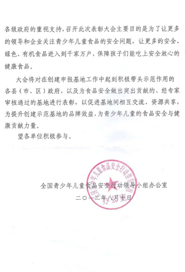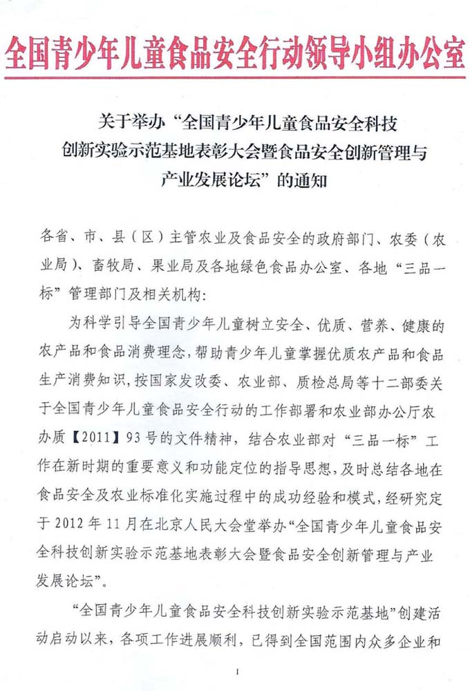 “全国青少年儿童食品安全科技创新实验示范基地”创建活动启动以来,各项工作进展顺利,已得到全国范围内众多企业和各级政府的响应支持,为满足工作需要,确保基地创建工作的科学、规范、顺利、有序进行,召开2012年度基地的总结表彰大会,主要目的是为了让更多的领导和企业关注青少年儿童食品的安全问题,让更多的安全、绿色、有机食品进入到千家万户,保障孩子们的健康成长。